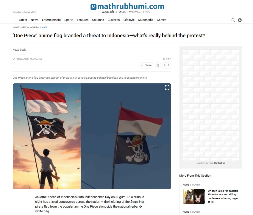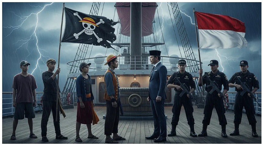 이러한 이미지는 인도네시아 젊은 층이 정부에 대한 불신과 비판을 표현하는 도구로 채택되었고, 2025년 8월 17일 독립기념일을 앞두고 대규모로 게양되면서 사회적 이슈로 확산되고 있다.