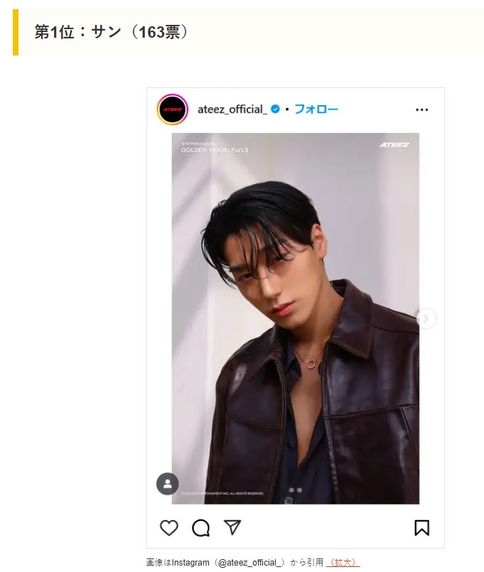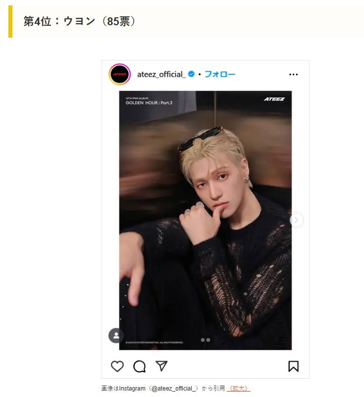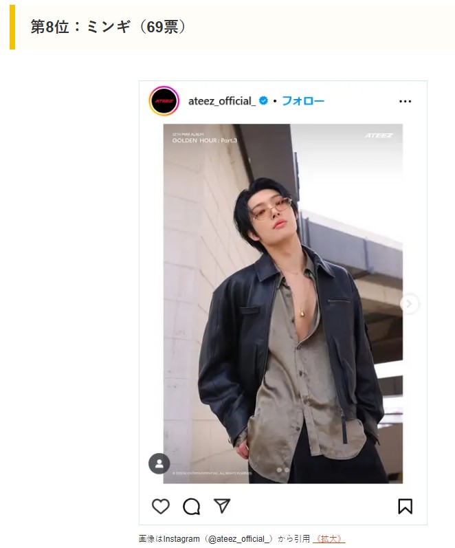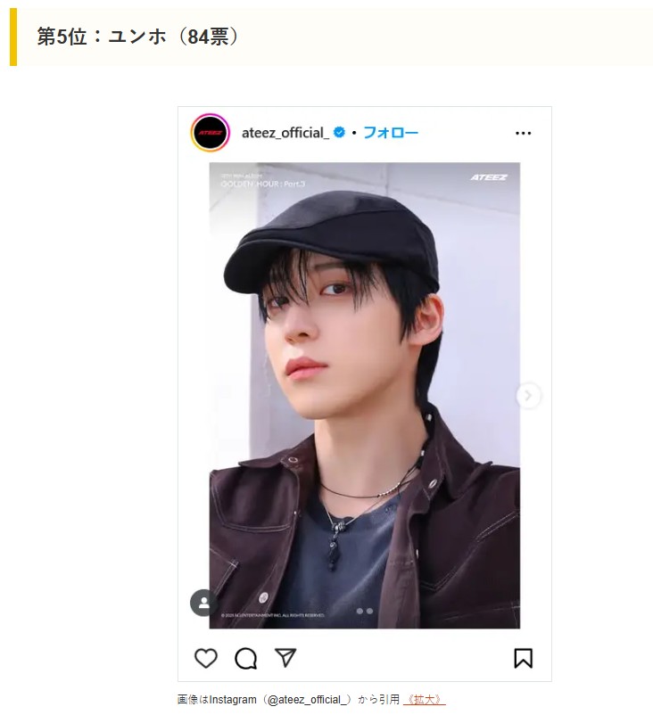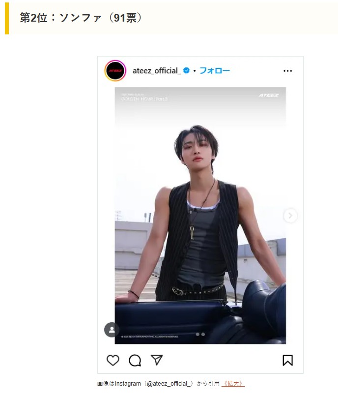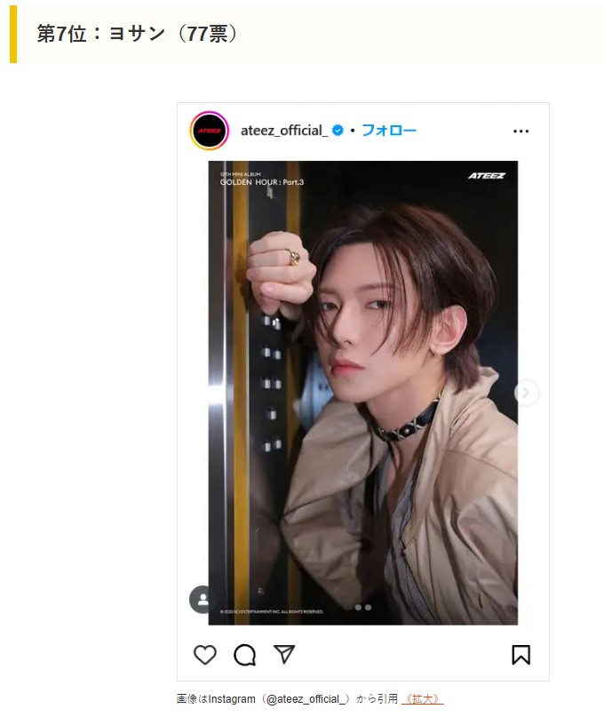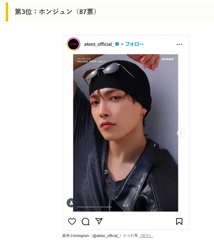 다음은 일본 매체 CM 사이트가 실시한 <ATEEZ 회원 랭킹 인기순위>다.