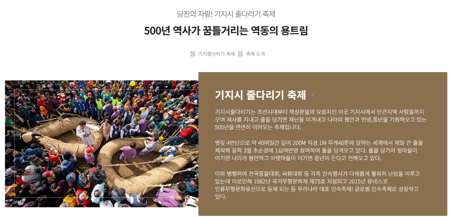 500년 이상의 역사를 자랑하는 충남 당진의 '기지시 줄다리기'가 그 대표적인 예다. 이곳의 줄다리기는 육지에 사는 '숫줄'과 바다에 사는 '암줄'을 결합하는 의식으로 시작되는데, 이는 풍농(豐農)과 풍어(豐漁)를 동시에 기원하는 의미를 담고 있다. "육지가 이기면 풍년이 들고, 바다가 이기면 풍어가 든다"는 믿음 속에서, 마을 사람들은 밧줄을 당기며 공동체의 안녕과 번영을 한마음으로 기원했다. 단순한 승패를 넘어, 마을의 운명을 건 대리전을 치른 셈이다.