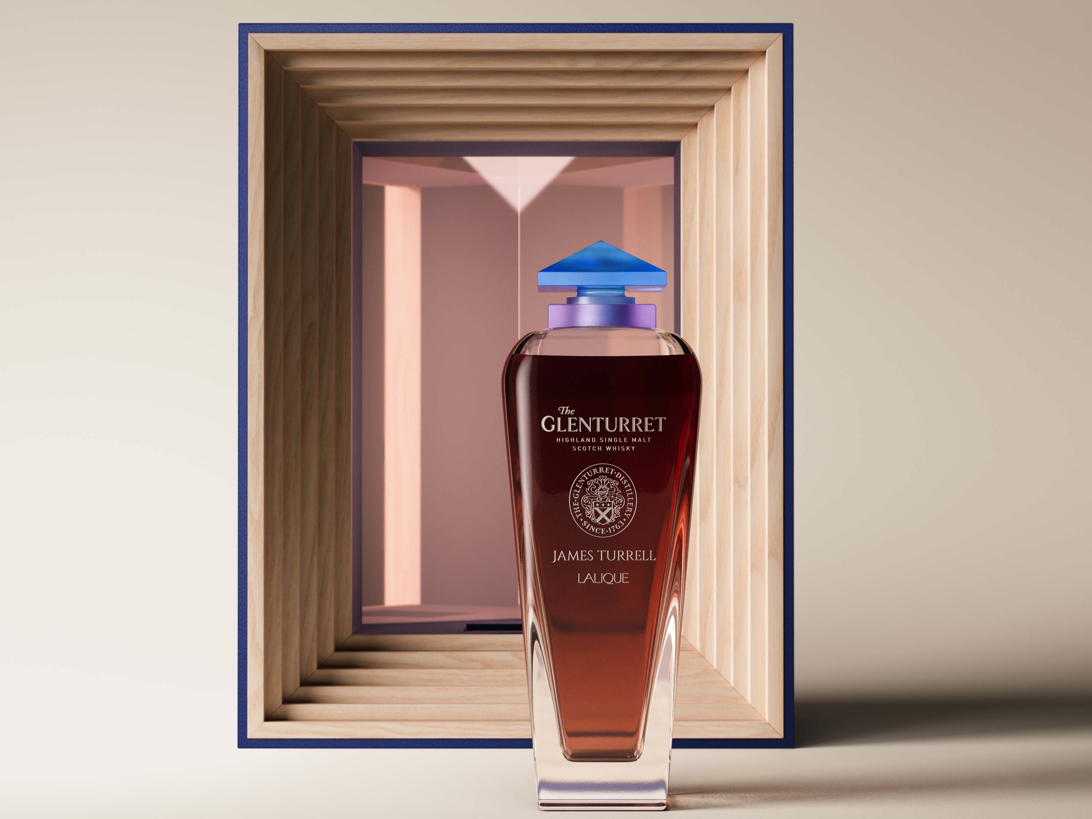 미국 아티스트 제임스 터렐, 프랑스 크리스털 브랜드 Lalique, 그리고 스코틀랜드 최장수 증류소 The Glenturret가 협업해 제작한 위스키 디켄터.