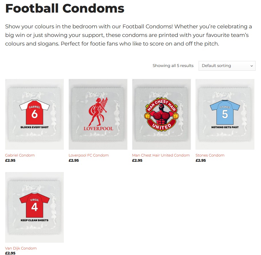 유럽에서는 특정 축구팀의 유니폼, 로고, 선수들의 이름을 패러디해서 디자인하는 커스텀 콘돔이 존재한다.