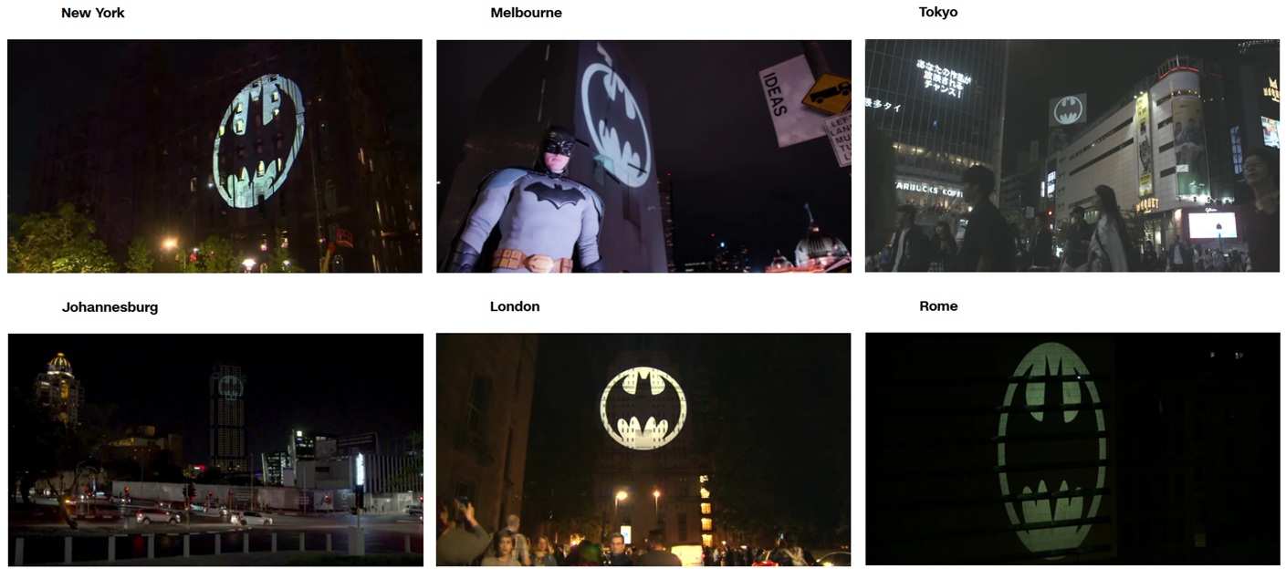 이날 DC와 워너 브라더스는 전 세계 주요 도시의 랜드마크 건물 외벽에 실제로 '배트-시그널(Bat-Signal)'을 쏘아 올리는 글로벌 프로젝트를 진행했던 것. 뉴욕, 로스앤젤레스, 멜버른, 파리, 베를린, 로마 등 세계 13개 도시의 밤하늘에 거대한 박쥐 문양이 동시에 떠올랐다.