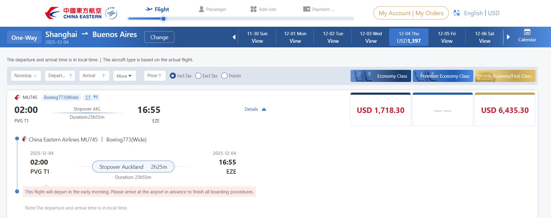 최근 중국 관영 CCTV는 중국 동방항공이 상하이에서 아르헨티나 부에노스아이레스를 잇는 직항 노선을 개설했으며, 지난 8일부터 항공권 판매를 시작했다는 소식을 전했다.