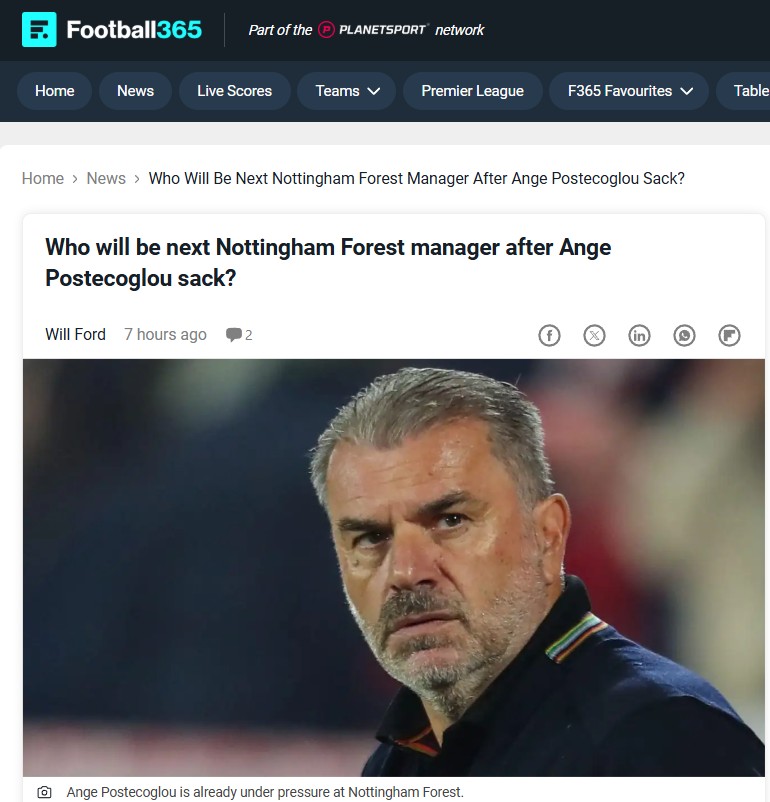 이 와중에 영국 축구 전문 사이트 football365에서는 <Who will be next Nottingham Forest manager after Ange Postecoglou sack? (엔제 포스테코글루 경질 후 노팅엄 포레스트의 차기 감독은 누구일까요?>라는 기사를 통해 후임 감독을 예상하고 나섰다.
