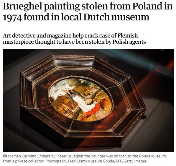 또한 1974년 폴란드에서 도난당했던 네덜란드 화가 피터 브뤼겔(Pieter Brueghel the Younger)의 회화가 반세기 가까이 지난 후 네덜란드 박물관에서 발견되었을 때도 "잃어버린 걸작의 극적인 귀환"이라는 미디어 스토리가 형성되며 작품에 대한 대중의 관심이 폭발적으로 증폭되기도 했다.
