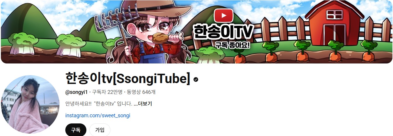 한송이tv 한송이(구독자 22만, 2025년 10월 기준)