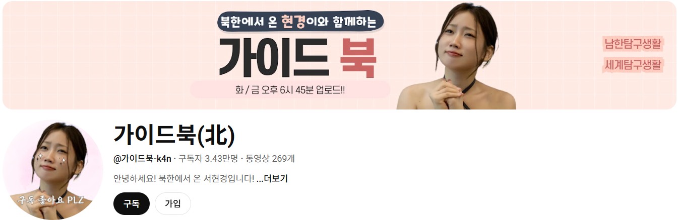 가이드북(北) 서현경(구독자 3.43만, 2025년 10월 기준)