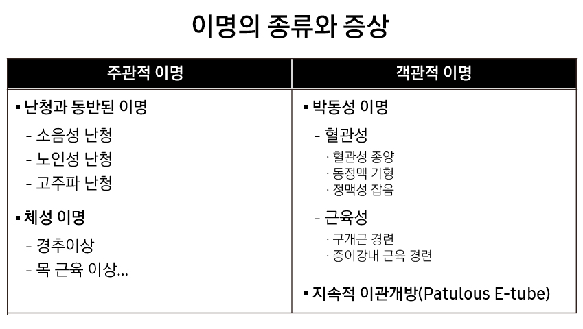 가장 주의해야 할 것은 심장 박동 소리처럼 '쿵쿵'거리거나 '슉슉'하는 소리가 들리는 박동성 이명이다. 서울아산병원 신경중재팀 이덕희 교수는 "박동성 이명은 뇌혈관 질환, 특히 뇌경막 동정맥루와 같은 심각한 질환의 신호일 수 있다"고 경고한다.