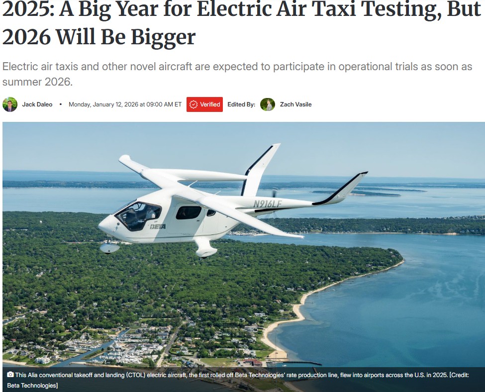 ▲ 성공적인 IPO vs. 자금 조달의 역풍: 베타 테크놀로지스는 주식 시장 데뷔(IPO)에 성공하며 자본을 조달하는 성과를 냈다. 조비(Joby), 아처(Archer), 릴리움(Lilium) 등 주요 eVTOL 기업들도 2026년 론칭을 목표로 전환 비행 테스트를 가속하고 있다.