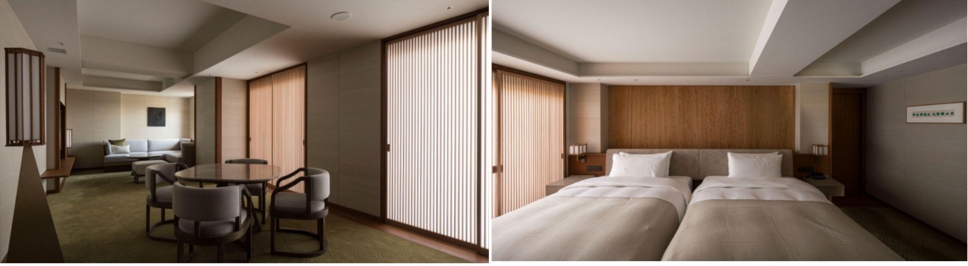 스위트룸은 객실 128㎡, 테라스 65㎡를 합쳐 약 200㎡의 거대한 규모(개인 온천, 정원, 국보급 가구 및 도자기 등)를 자랑하는데, 이 방의 가장 큰 가치는 바로 '입지'라고 말한다.