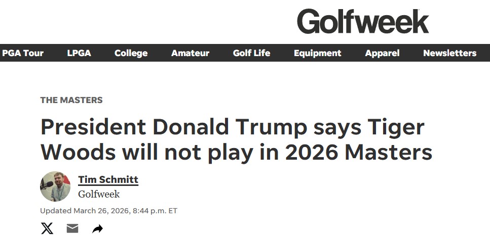 참으로 공교롭게도 사고 며칠 전, 도널드 트럼프는 마치 자신이 우즈의 최측근 대변인이라도 된 양 "타이거 우즈는 2026년 마스터스 토너먼트에 출전하지 않을 것"이라고 단언해 화제를 모으기도 했다. 재활중이었던 타이거 우즈의 복귀 여부가 초미의 관심사였던 것은 맞지만, 전쟁을 일으킨 대통령이 이 시국에 언급하기에는 그다지 적절하지 않은 것이 사실이다.